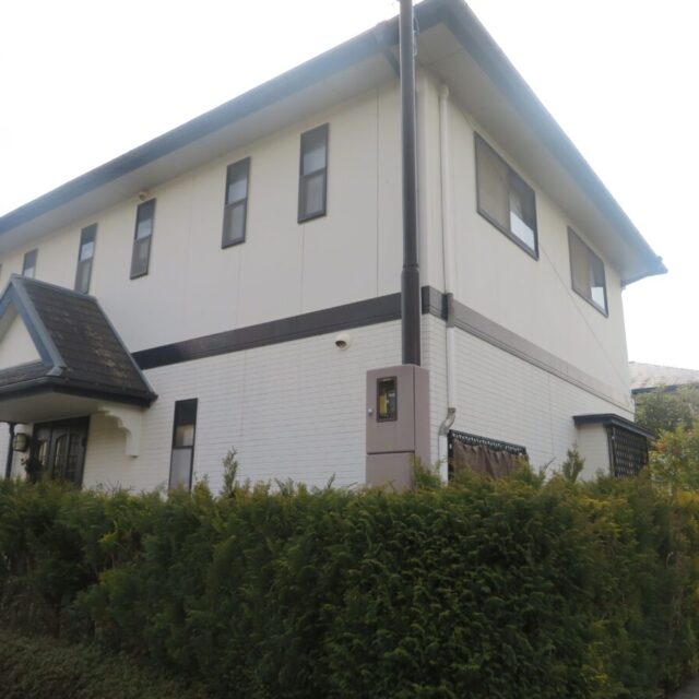 上下のコントラストをはっきりさせることで、お住まい全体の立体感が強調され、新築時のような輝きを取り戻しています。庭先のグリーンとも相性抜群の、明るく開放感のある仕上がりにお施主様からもお喜びの声をいただきました。