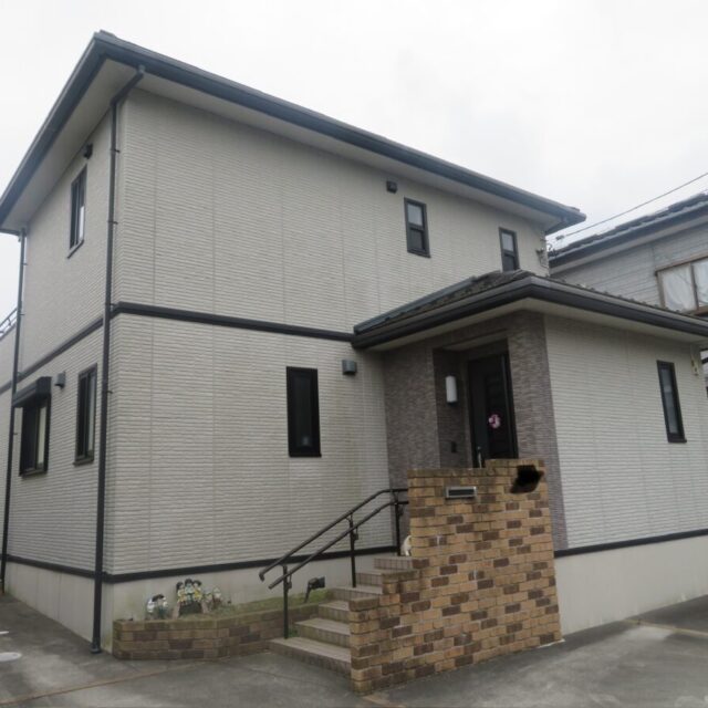 「外壁の汚れが目立ってきた…」というお悩みを、明るいトーンへの一新で解決。 以前の印象を大切にしつつ、色の明度を上げることで、お家全体がパッと明るく、広く見えるようになりました。毎日帰るのが楽しみになるような、爽やかでスタイリッシュな佇まいです。
