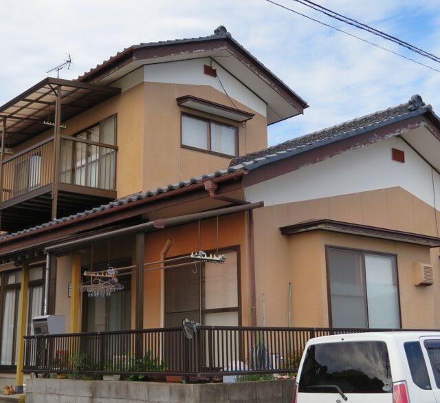 「外壁全体にチョーキング現象(色あせ)が見られ、防水機能が低下しているサインが出ています。大切なお住まいを長く守るため、高耐久な塗料をご提案いたしました。」