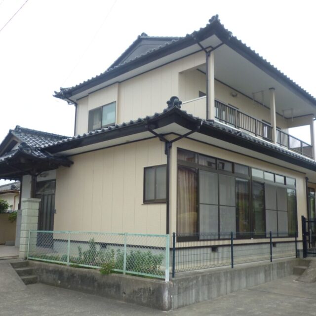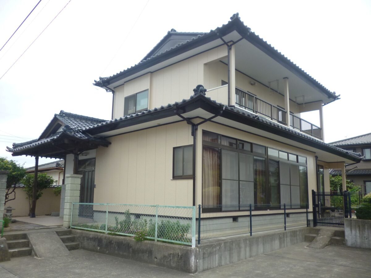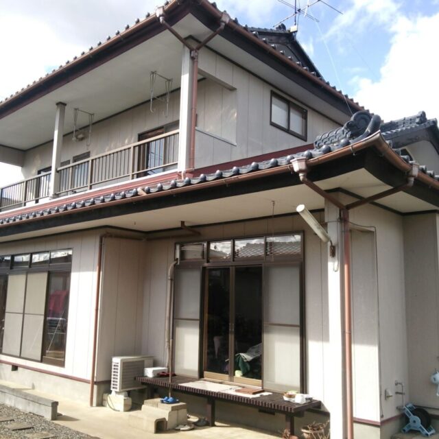 経年により色あせが見られた外壁を、和の趣を壊さない落ち着いたベージュトーンで塗り替えました。雨樋や破風板などの付帯部を濃色で引き締めることで、伝統的な造りの美しさがより一層際立ちます。