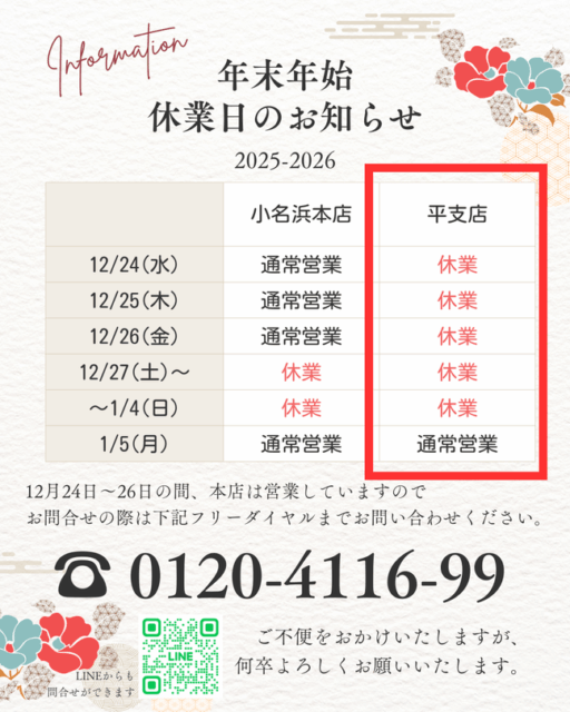 ■平支店休業期間:12月24日(水)〜1月4日(日)